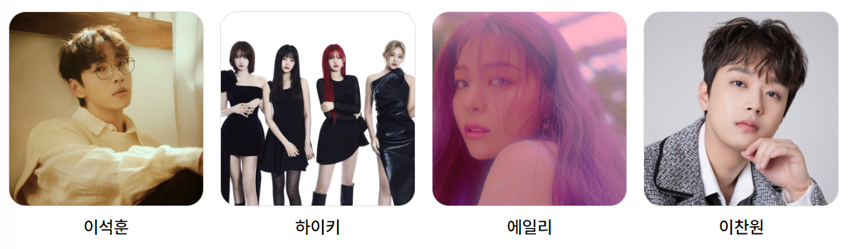 이석훈, 하이키, 에일리, 이찬원이 초대가수로 등장하며 이후에 불꽃축제가 진행됩니다.