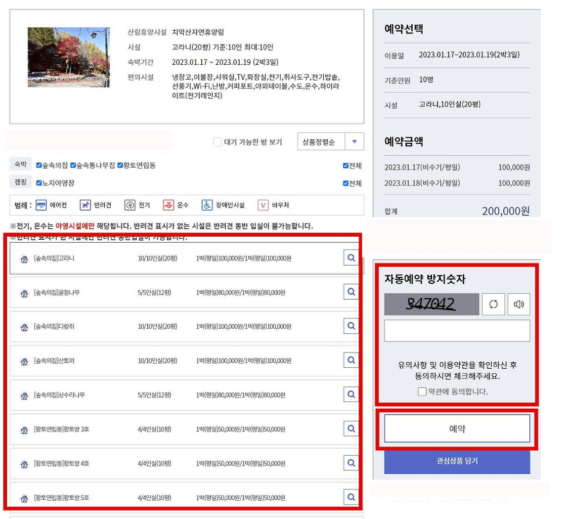 ✅ 선택한 휴앙림에 원하는 방 타입을 선택한 후 예약합니다.