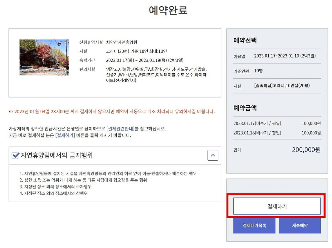 ✅ 예약 시 신속하게 진행하고, 여러 날짜와 휴양림을 선택해두는 것이 좋습니다.