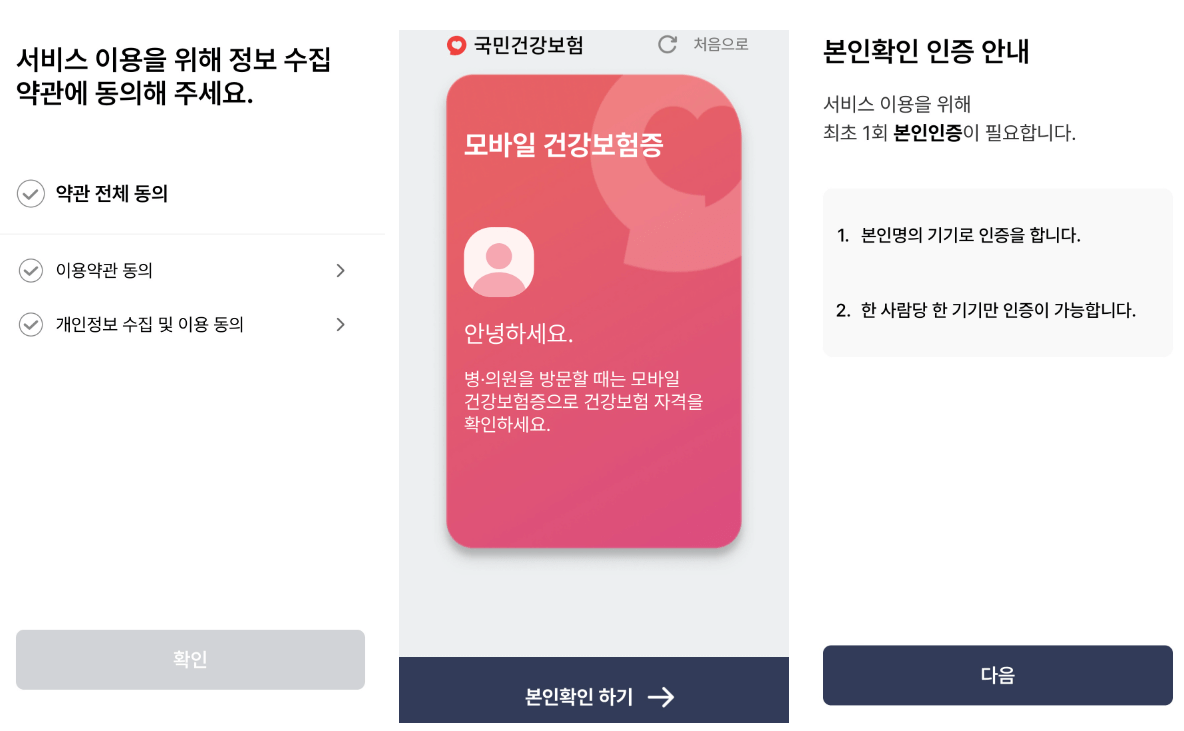 국민 건강보험공단에서 만든 모바일 신분증입니다. 병원 진료 시 신분증이나 건강보험증을 보여줘야 합니다.