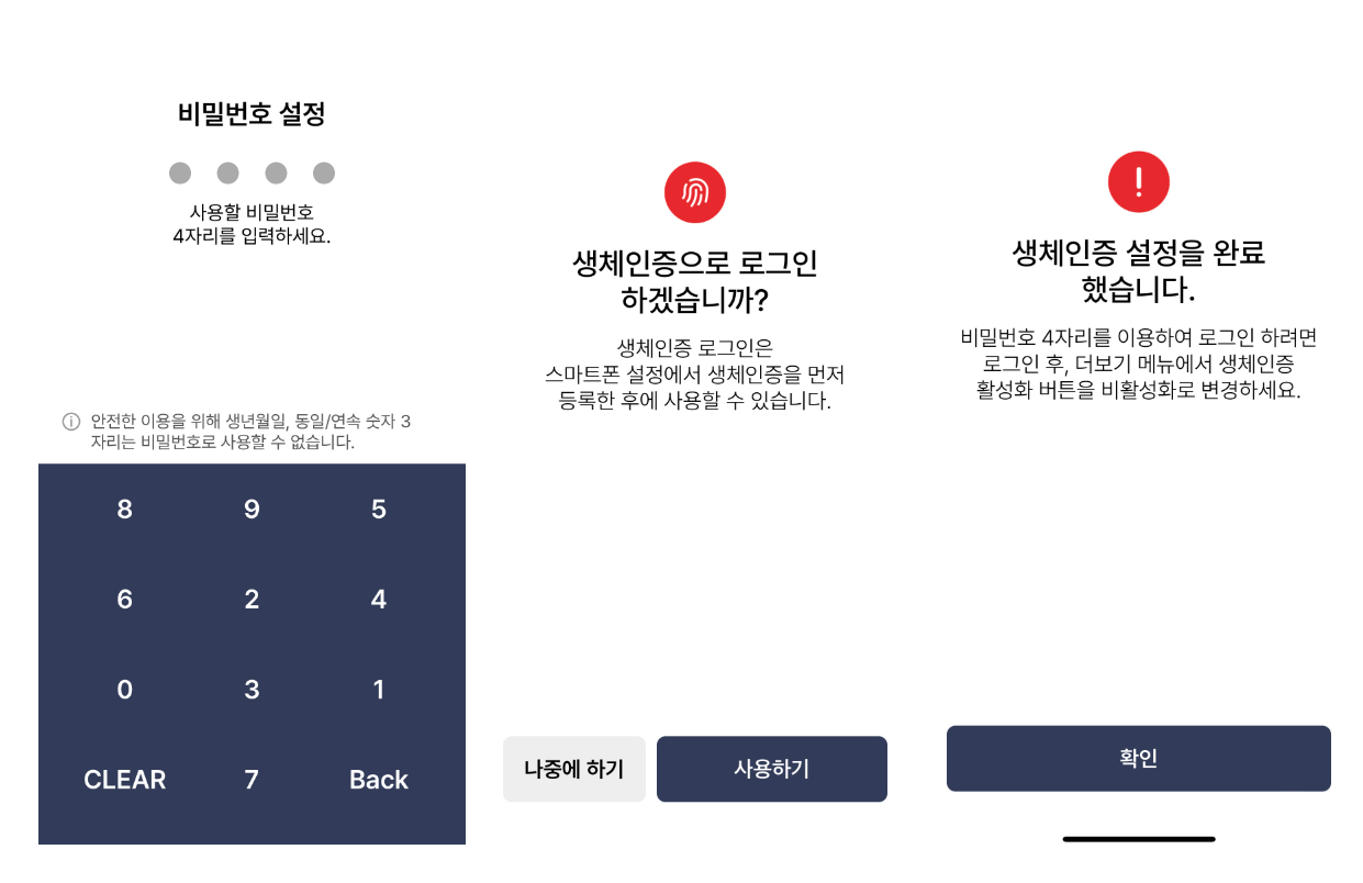 5. 비밀번호 등록합니다. 하단에 생체인증 인식 [사용하기] 를 누릅니다.