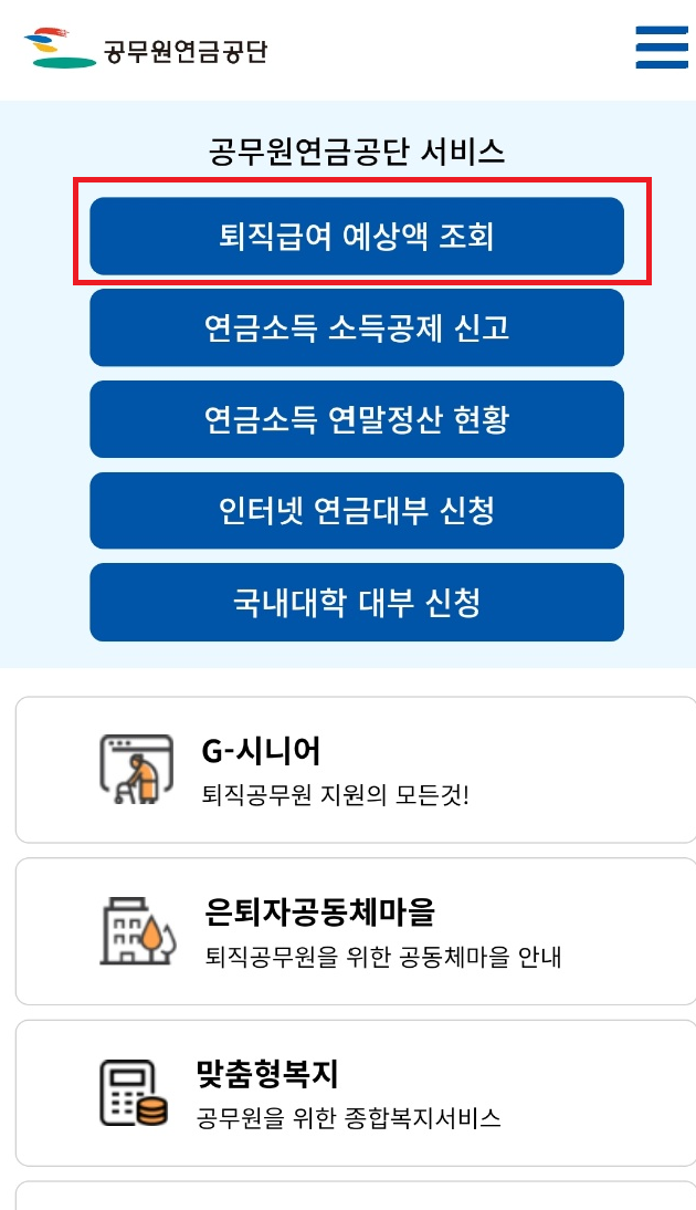 2. 아래 화면에서 퇴직급여 예상액 조회를 누릅니다.