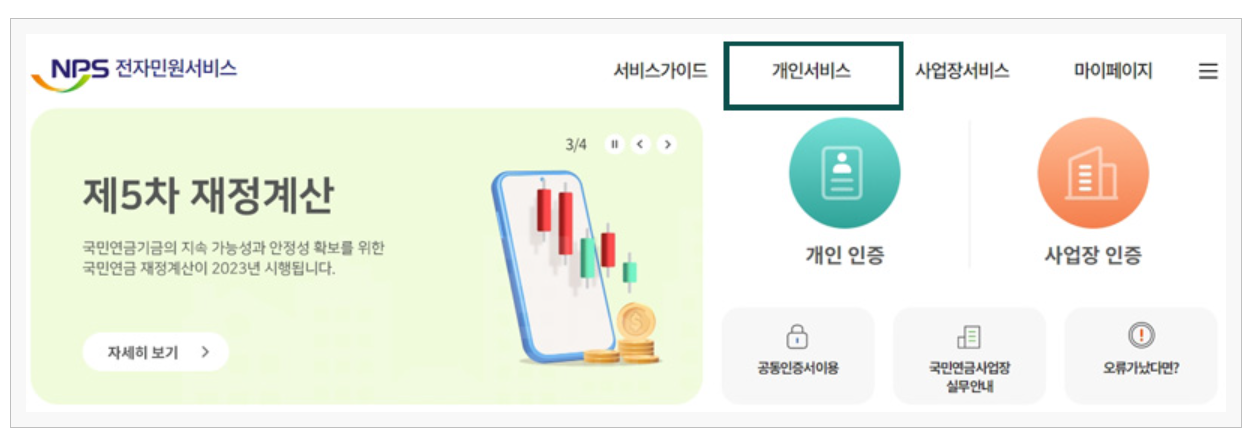 1. 국민연금공단 홈페이지에 접속합니다.